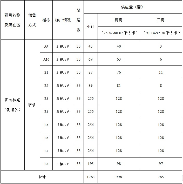 本次供应第二批房源1763套,房屋户型、套数等情况详见下表: