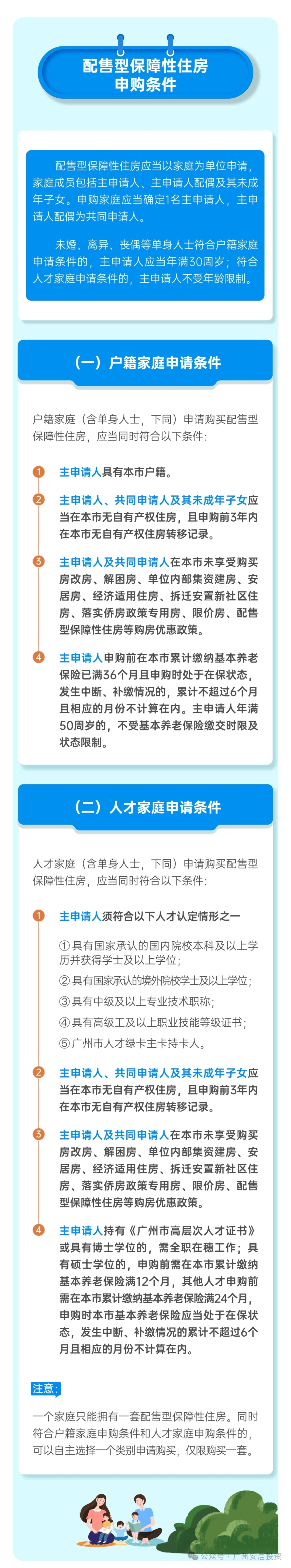配售型保障性住房以家庭为单位申请,家庭成员包括主申请人、主申请人配偶及其未成年子女。具体申购条件及购买流程详见《广州市配售型保障性住房管理办法(试行)》(穗府办规〔2024〕17号)、《广州市市本级配售型保障性住房配售管理实施细则(试行)》(穗建规字〔2024〕24号)、《广州市2025年第二批配售型保障性住房销售通告》。