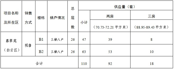 本次供应第二批房源110套,房屋户型、套数等情况详见下表:
